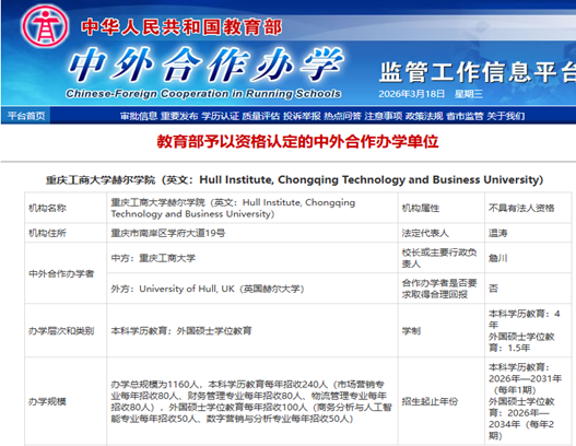 项目详情请见:重庆工商大学赫尔学院2026年中外合作办学外国硕士学位教育招生简章-国际商学院https://ibs.ctbu.edu.cn/info/1063/7447.htm